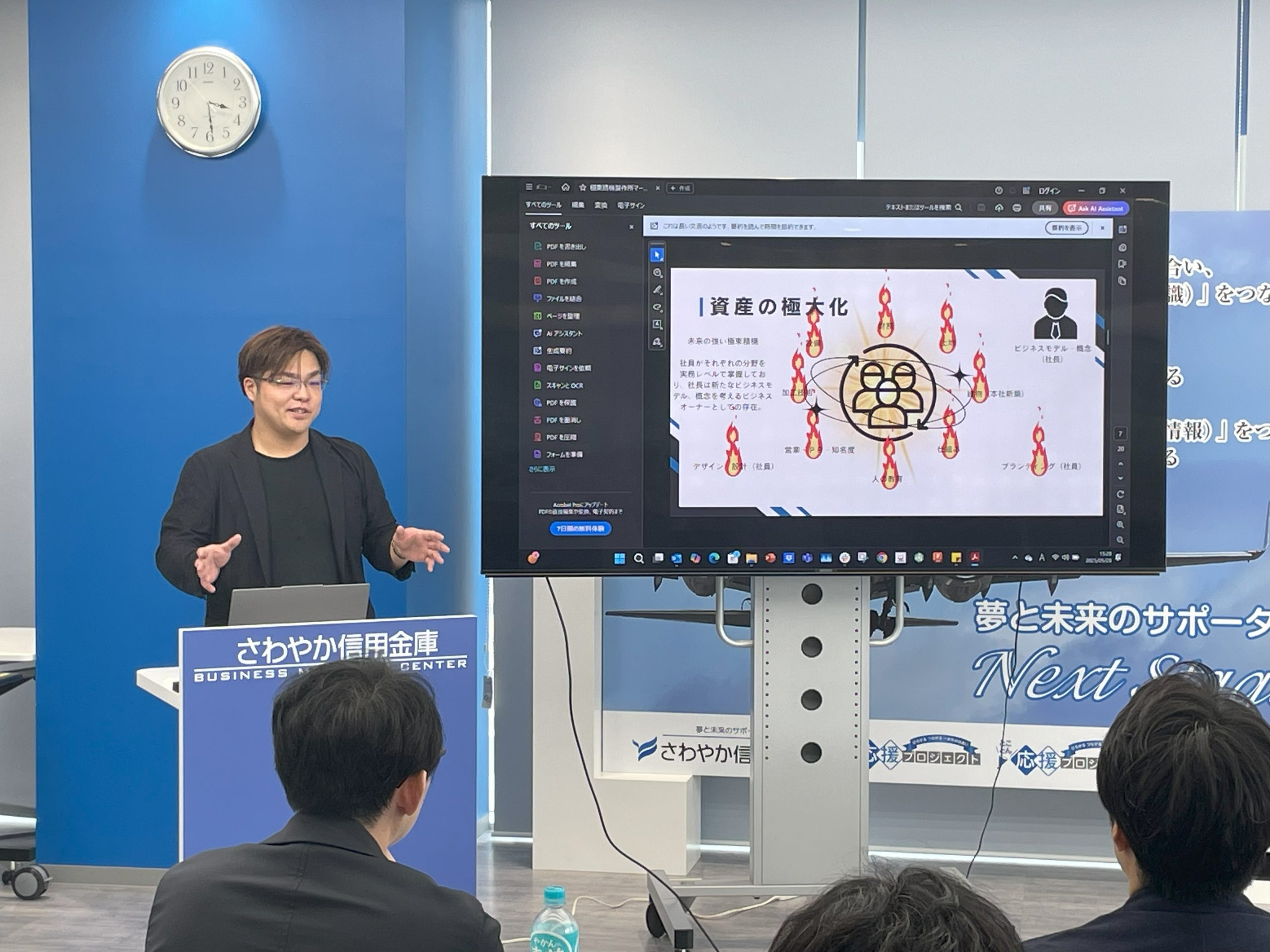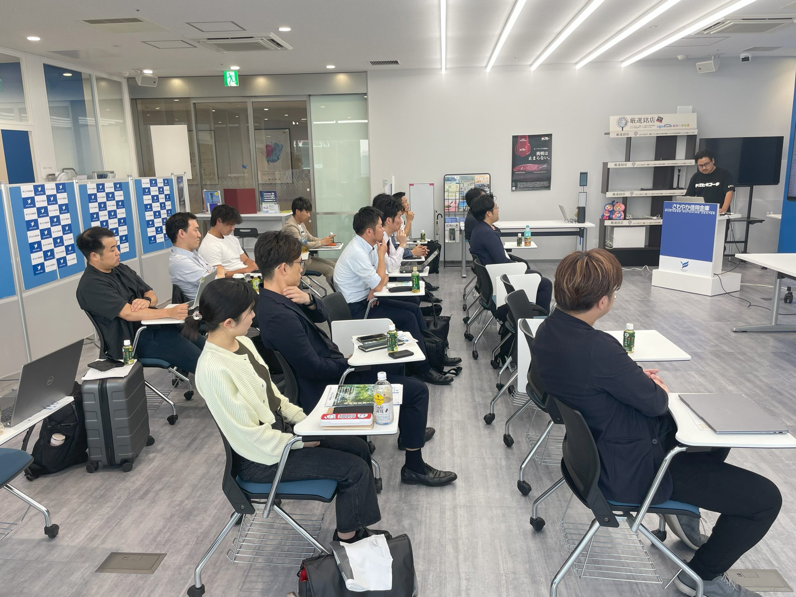 5月28日、羽田イノベーションシティ内にある「さわやか信用金庫ビジネスマッチングセンター」にて、5月のOSEKKAI salonが開催されました。今回は、サロンメンバー15名に加えて、静岡県焼津市からのゲストを含む5名のオブザーバーが参加。熱量高めのプロジェクトの発表が次々と飛び出す、賑やかで濃密なひとときとなりました。